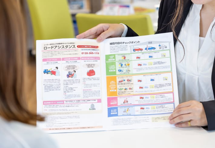 自動車保険をはじめとする火災保険・地震保険・生命保険にいたるまで取り扱いを行っております。保険アドバイザーの役割として一番大切なのは保険で大切なお客様をどこまで保護できるのか、しっかり診断して的確なアドバイス、的確な保険の見直しを提案することです。