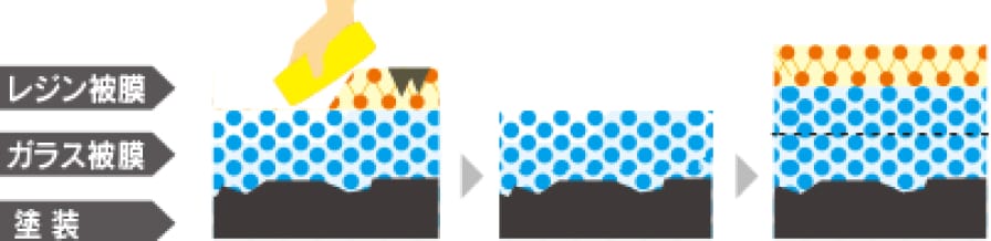 キーパー被膜は塗装の身代わりとなって汚れを被膜表面に受け止め、酸性雨や摩擦などによる「荒れ」の要因を受け止める「犠牲被膜」の性質を持っています。
