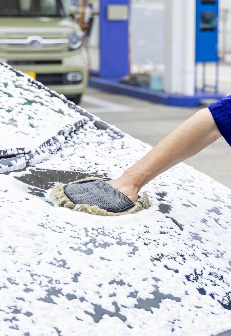 洗車で、ボディに付いている汚れを落とします。